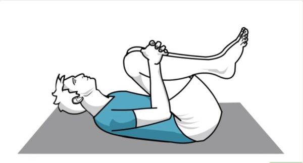 Шаг 6. Можно также выполнить несколько перекатов на спине. Для этого достаточно лечь на спину, обхватить ноги руками и покачаться.