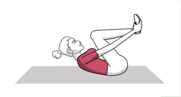 - Лежа на полу нужно установить ноги так, чтобы пятки касались ягодиц. Это исходное положение. На выдохе надо сесть, обхватить колени руками, а затем медленно принять исходное положение. За 1 подход надо делать 10–15 повторений. Количество подходов 3–4.