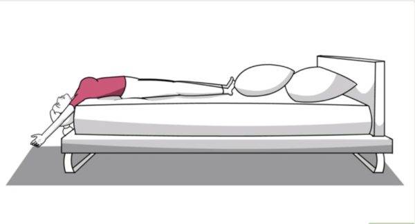 Шаг 5. Позвонки встают на место и при выполнении нескольких упражнений в рамках обычной растяжки. Например, можно лечи на кровать спиной так, чтобы часть тела свешивалась с края кровати, и аккуратно опускаться вниз.