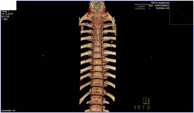Расшифровка результатов КТ позвоночника проводится исключительно специалистом. Самостоятельно понять, о чем идет речь праКТически невозможно.