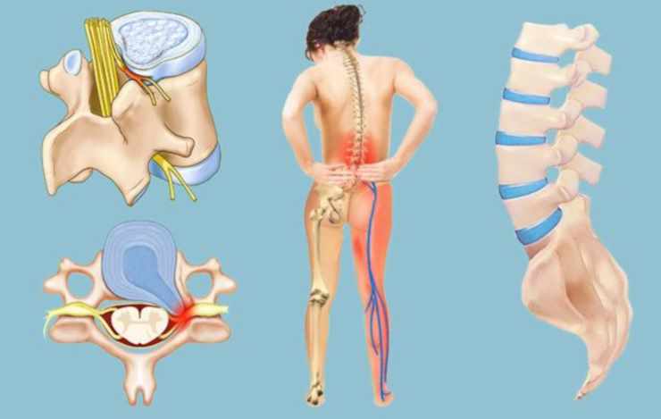 - Пояснично-крестцовый радикулит вследствие остеохондроза и смещения межпозвонковых дисков