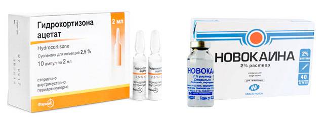 - Смесь Гидрокортизона и Новокаина в виде инъекций снимает устойчивую боль.