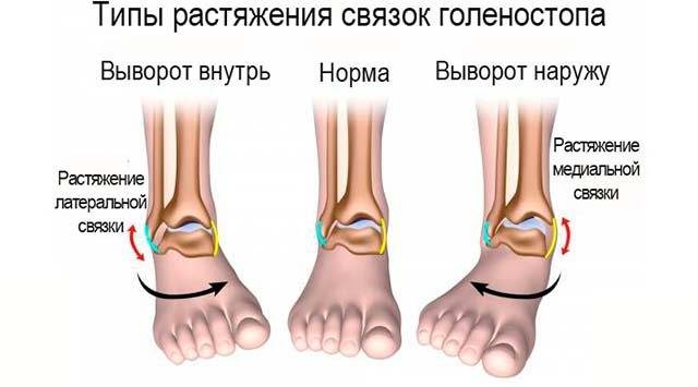В зависимости от степени повреждения сустава голеностопа различают следующие виды травм: